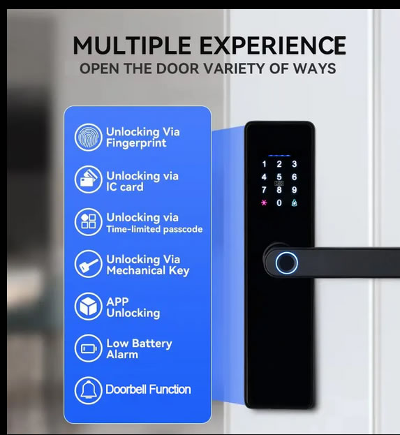 The Smart Door Lock with Handle allows you to unlock your door without the need for a physical key. You can use multiple access methods, including PIN codes, smartphone apps, fingerprint scanning, or even RFID cards (depending on the model). This eliminates the hassle of fumbling with keys and enhances the security of your property.